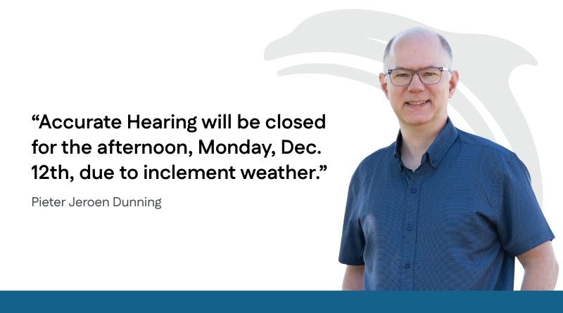 Accurate Hearing will be closed for the afternoon, Monday, Dec. 12th, due to inclement weather